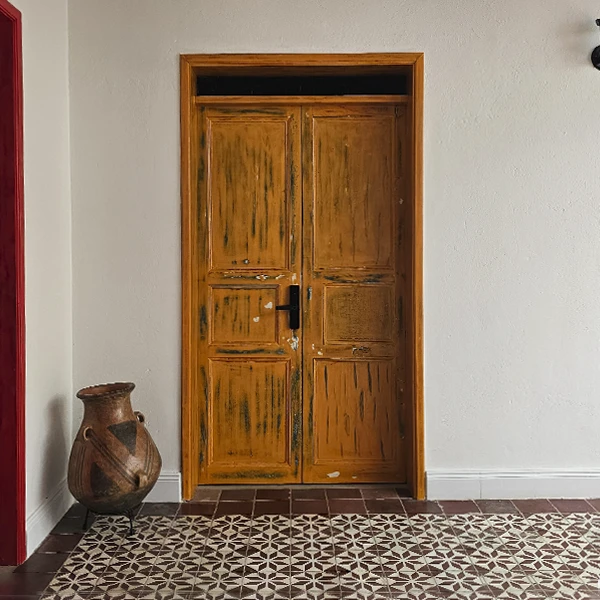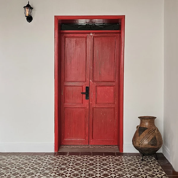 Nuestra habitación Herbal te recibe con un pórtico de color rojo, el cual refleja hospitalidad, fuerza y energía, para un buen descanso.