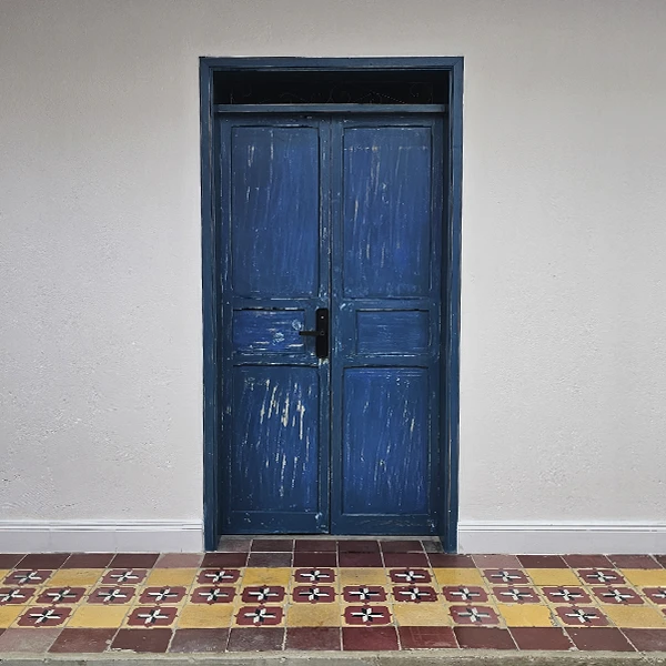 Nuestra habitación Lumier te recibe con un pórtico color Azul, el cual origina tranquilidad y confianza para un descanso placentero.